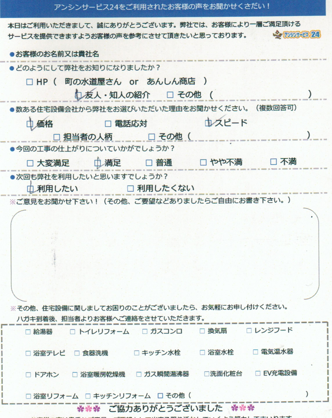 この度は、アンシンサービス24をご利用頂き誠にありがとうございます。